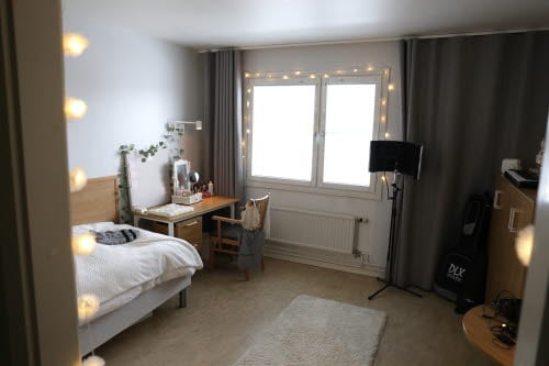 • Alla rum är möblerade med säng med madrass, sänglampa, sängbord, skrivbord, arbetsbelysning, stol och bokhylla. Rummen hyrs möblerat och möblerna får inte flyttas ut ur rummet.