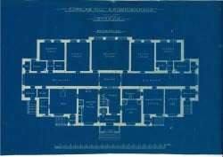 Ritningen visar det blivande epidemisjukhuset i Storvik, som stod färdigt den 7 september år 1914. Den dåvarande epideminämnden beslutade den 21 april 1913 att godkänna ritningen, och arbetet med att uppföra det nya epidemisjukhuset kunde påbörjas. Den slutgiltiga notan för nybygget landade på 95 546 kr och 69 öre. Upptagningsområdet för det lilla epidemisjukhuset var Ovansjö, Järbo och Torsåker.