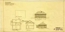 På denna ritning, gjord av arkitekt Sten Dalén år 1947, ser vi en hönshusbyggnad med utgrävd källare, som byggdes vid Gysinge vårdhem. Vårdhemmet startade som ett bygdesanatorium och epidemisjukhus, men övergick senare till att bli vårdhem för personer med psykisk sjukdom och var i drift fram till 1980-talet.