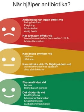 Information om antibiotika. "När hjälper antibiotika?" Finns på flera olika språk.